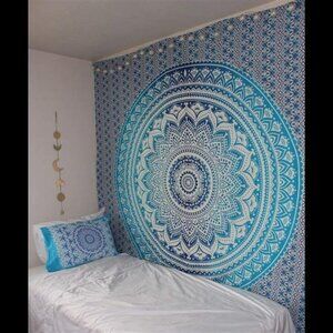 -MATERIAL & SIZE: This mandala Ombre tapestry is made of 100% cotton fabric, made and printed in India, which is durable, soft, and lightweight With delicate hand sewing, the edges are neat and finished. and easy to hang or pack away for your indoor or outdoor use: This sheet measures Full (230 x 220 Cms / 88 x 85 Inches)