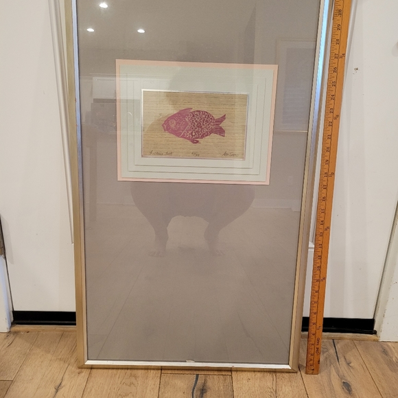 fushia fish framed and matted.