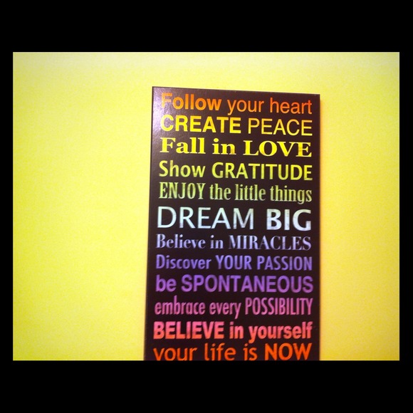 Wall decor I got for Xmas. Can go great anywhere! Very inspirational and colorful