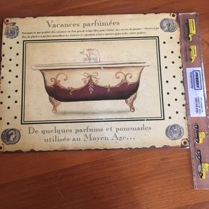 Metal wall hanging with measurements in pictures listed.