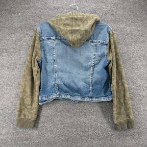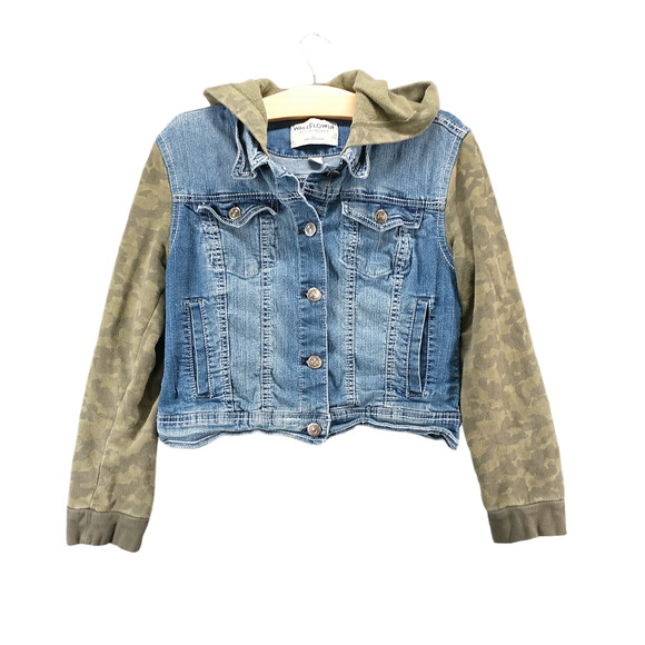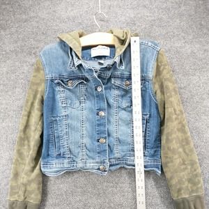 WallFlower Girls Hooded Denim Jean Jacket Blue Green Camo Large Layered Look