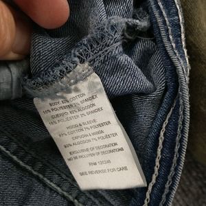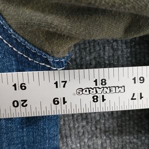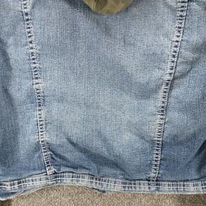 Condition: Nice layered look jean jacket with camo trim. No stains or rips!