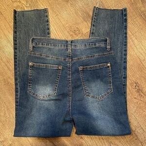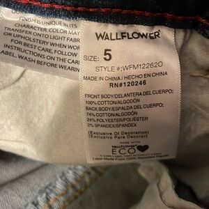 Wallflower The Mom Jean High Rise Distressed Jeans. Great pre-owned condition no stains. Raw edge legs. Size 5, waist 13 1/2”, rise 11”, inseam 26”.