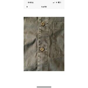 The Wallace & Barnes J Crew Blue Duck Canvas Chore Jacket in Men's size M features a corduroy collar and button closure, making it suitable for various occasions such as travel, casual outings, workwear, and parties. The jacket is made from breathable cotton canvas with a spread collar style, mid-length, and regular fit. It also includes pockets for added functionality. Perfect for outdoor activities in all seasons, this classic and timeless piece from Wallace & Barnes is machine washable for easy care.