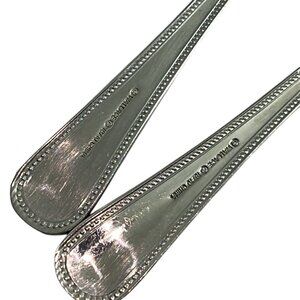 Wallace Continental Bead Stainless Flatware Serving Fork Pierced Spoon 18/10 in preowned condition with light signs of wear. Fork measures 8.75" long and the spoon measures 8.5" long.