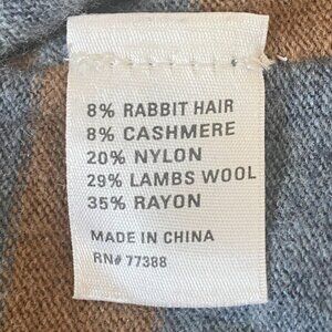 -8% rabbit hair, 8% cashmere, 20% nylon, 29% lambs wool, 35% rayon