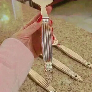 in like new condition. silver Wallace beautiful service big spoons and fork bundle.