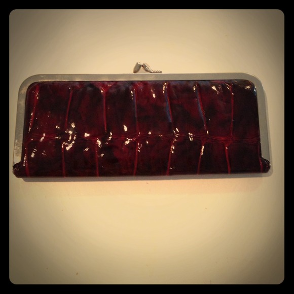Dark red faux leather wallet. Lots of pockets for your cards. Great thin little wallet!