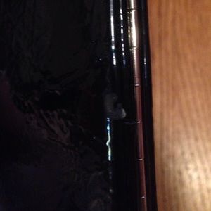 Navy blue leather wallet with navy interior. Silver hardware. Slight wear (seen in 3rd picture)