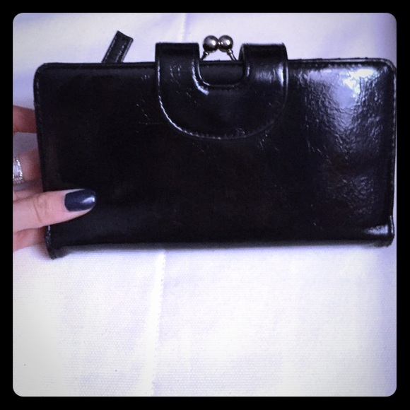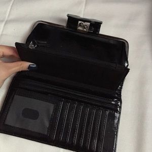 Black. 8 card slots. Have a coin holder. Gently used
