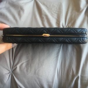 Black. Used for a few weeks. Slightly larger than my style given to me as a gift. Little fray on one corner. Inside in great condition.