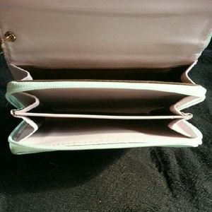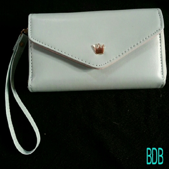 Brand new super cute baby blue with light pink inside has a spot for your phone with a slit for headphones
