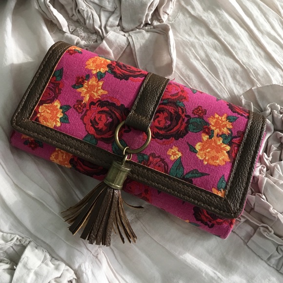 Pink wallet with red and orange flowers!!
