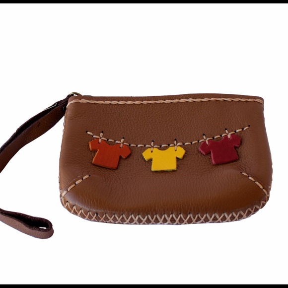 Oh so cute ! Genuine leather , cut and stitched together to resemble clothes line 😊😊. Great for coin purse or credit card Wallet. Lined in suede cloth.
