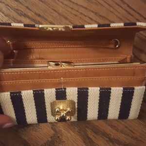 Nautical themed wallet with convenient space for credit cards, cash and coins. Never been used.