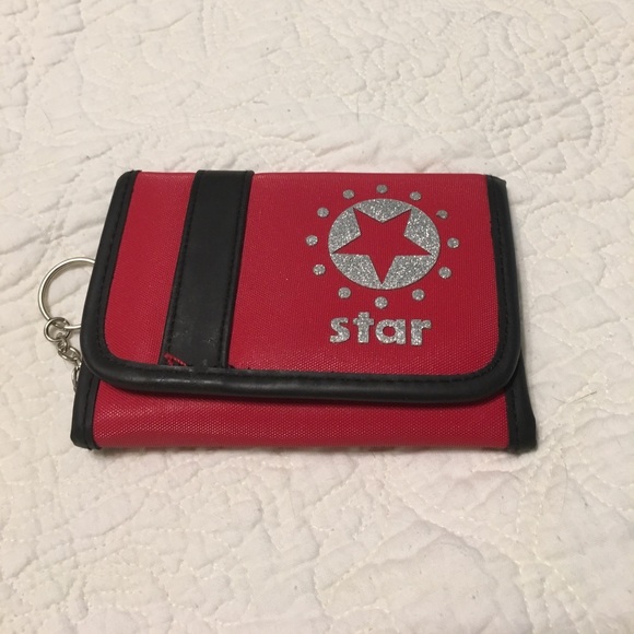 Excellent condition- she maybe used it once! Scratch and rip resistant material- leather like trim, sparkly detail! Great organization inside - even a key ring! Approx 5in x 4 in