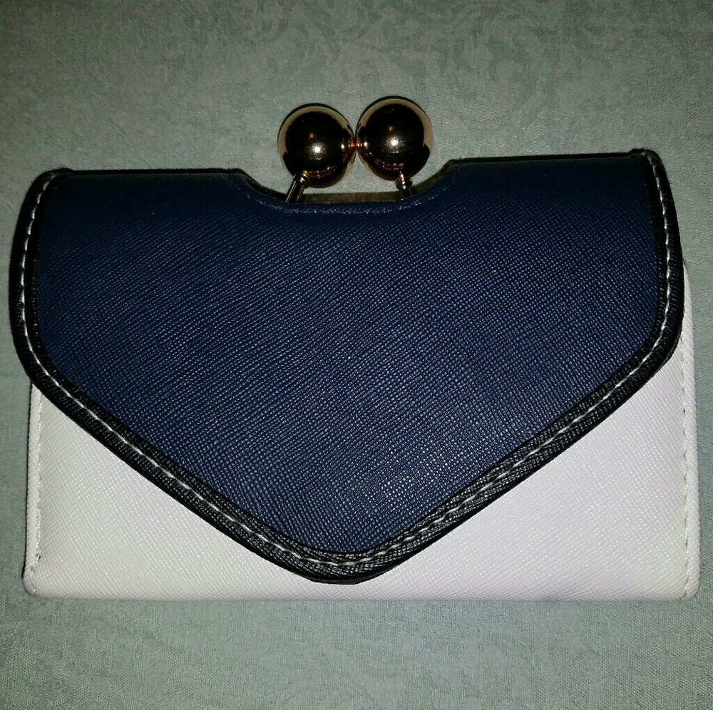 Navy Blue and White Exterior with A Black Interior. Gold Designed Closing Top
