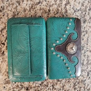 Slightly used bull skull wallet. Brown and turquoise in color. Not missing any jewels.
