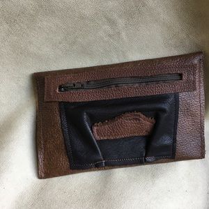 All leather handmade bifold wallet with change pocket in the back.