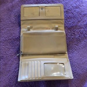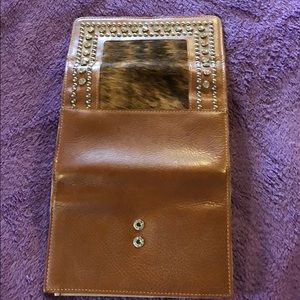 Beautiful hair and bling wallet. Great condition a few marks which I will try to remove. Removable checkbook cover. Pen holder and zipper pockets!