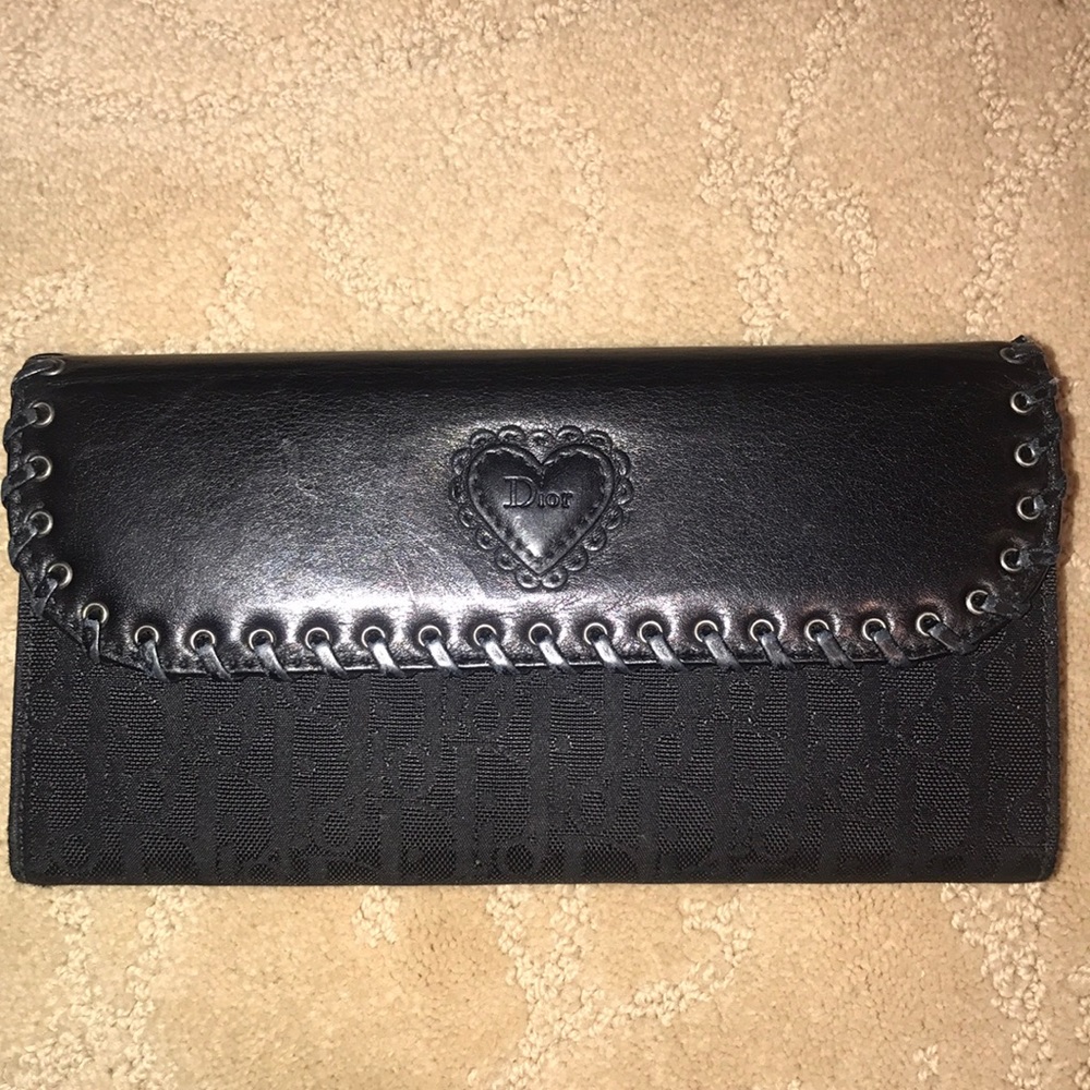 Christian Dior black wallet with leather and tufted design! Has some marks here and there on the leather and is a bit dirty! 100% Authentic!!!!!