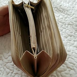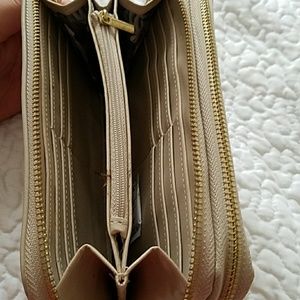 Cream/nude beautiful color two side pocket wallet very roomy! In great shape basically new!
