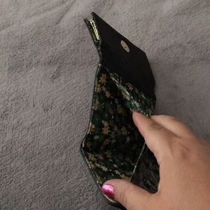 Black wallet with flower pattern inside. Gold hardware. No known flaws. Used a handful of times. Looks brand new.