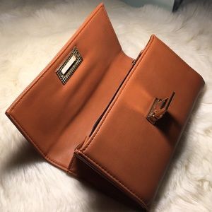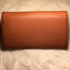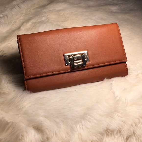 Large, dark-tan wallet. In good condition. A lot of inside space.