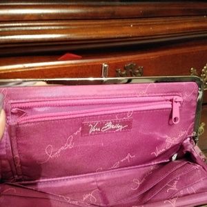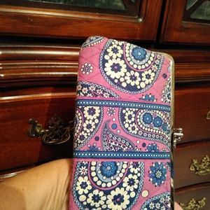 Vera Bradley floral wallet it's clean 2 compartments to put your credit cards,ID card and many other stuff.its pink,blue, White