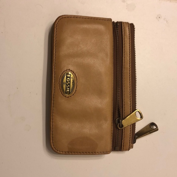 Fossil wallet. As seen in pictures small dark color change spot from water