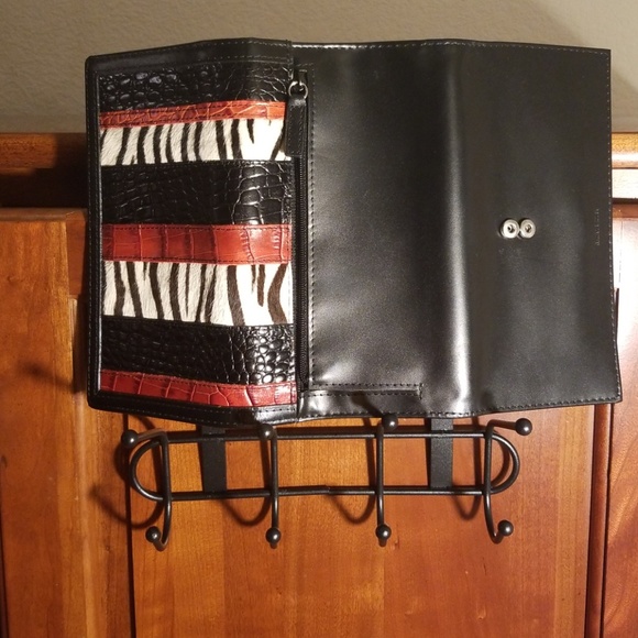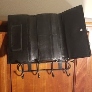 Leather wallet with multiple card slots and two snap closure options.