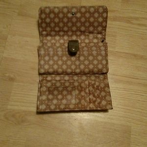 Big, has many slots for cards and I'd. It has zippers and buttons
