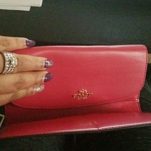 Coach wallet tan & Brown w Red lining