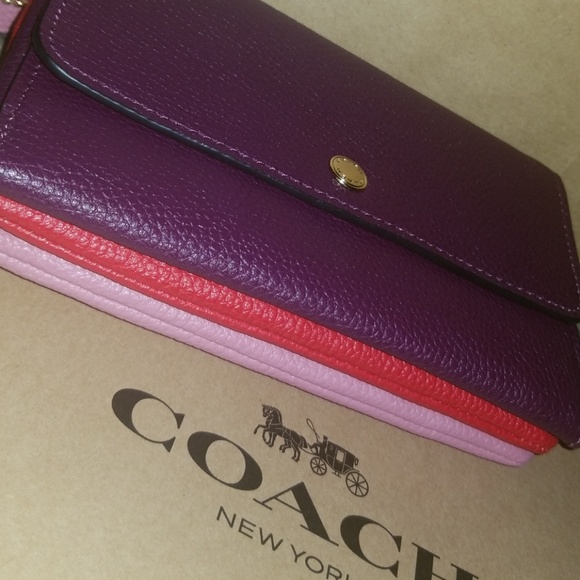 Cute - Never used - Medium size - NWR - Tripple compartment, Zip/Snaps - Multi colored: Purple, Pink, Red W/ gold accents - Bought 2.16.19