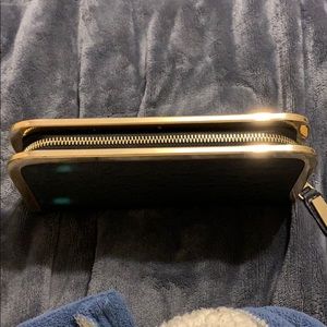 Large wallet that is all black with gold lining(metal) large enough to hold a iPhone inside and all your cards !