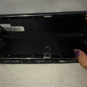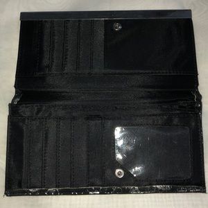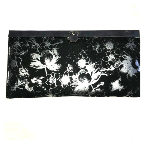 Black wallet with floral print in silver! Great for dressing up or dressing down.
