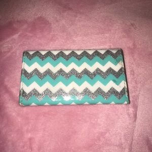 Used, but like new in good condition. • Blue, White, Silver. • Good for cards and carrying cash.