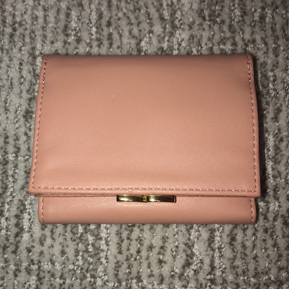 Super cute light pink wallet! Never used before (so in great condition). There are many places to store your cards, cash, and coins!!