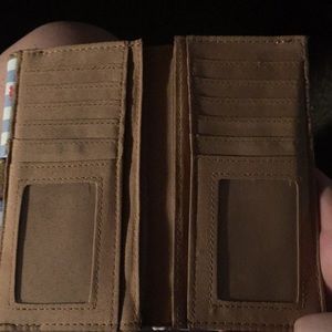 Selling a flowered wallet still in good shape used it until I got a new one has a lot of compartments