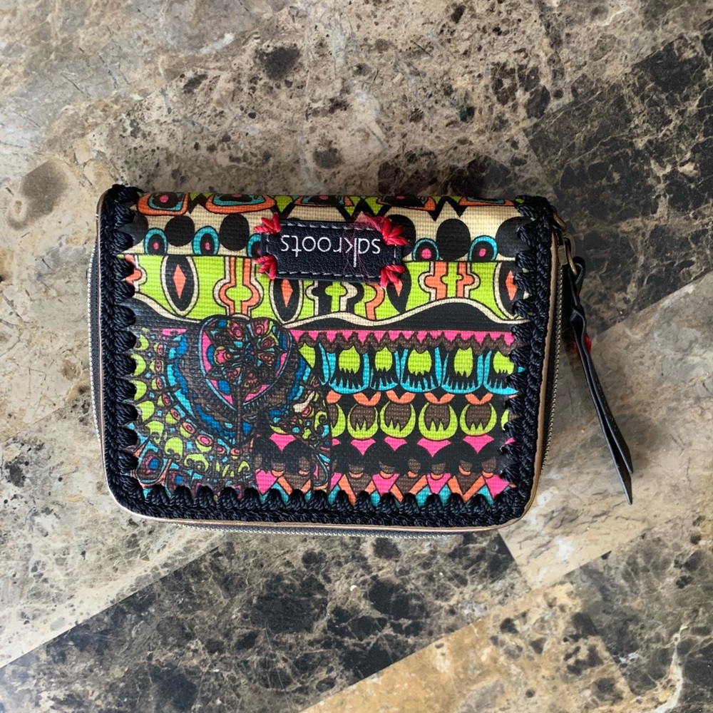 This is a sakroots wallet. Very nice quality and it will last you a long time. I have never used this one.