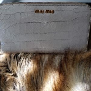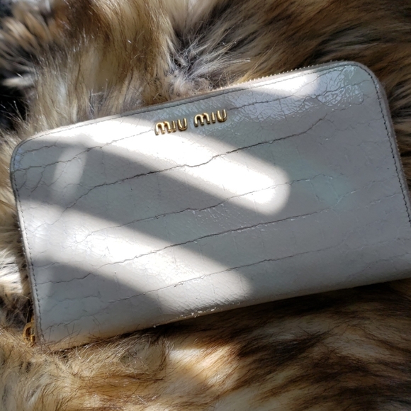 Miu miu cream leather zip around wallet with goldtone hardware. Preowned condition. 7.5" x 4.5"