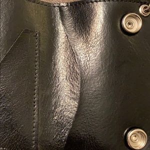 Leather wallet with 3 pockets for cards and one pocket for bills.