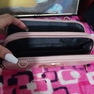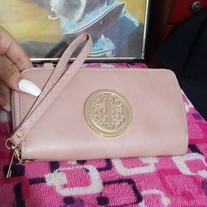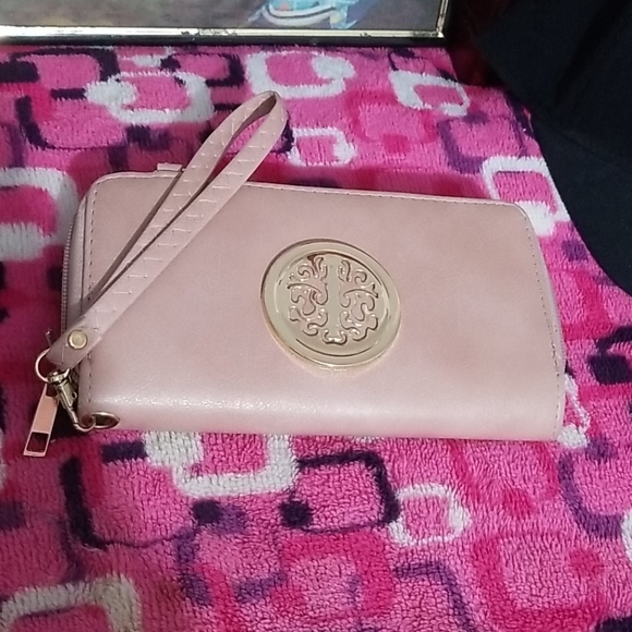 A pink wallet with gold medallion in the middle BRAND NEW!!