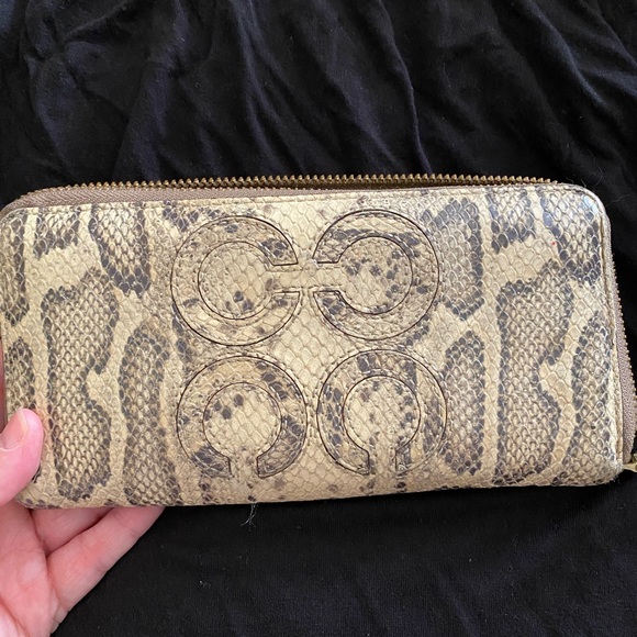 Coach snakeskin print wallet. Good condition. Clean inside. Slight fraying of stitching on front