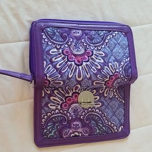 Clutch with strap. Lots of room for credit cards and change. Used literally one time.