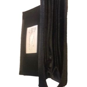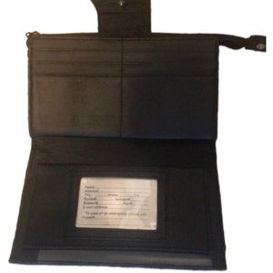 Wallet with snap top. One side has a zipper. Room for checkbook and cards.