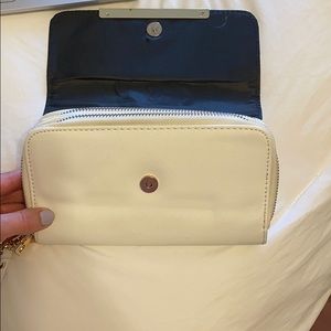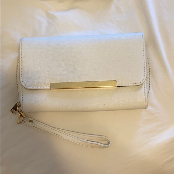 White wallet with gold accents