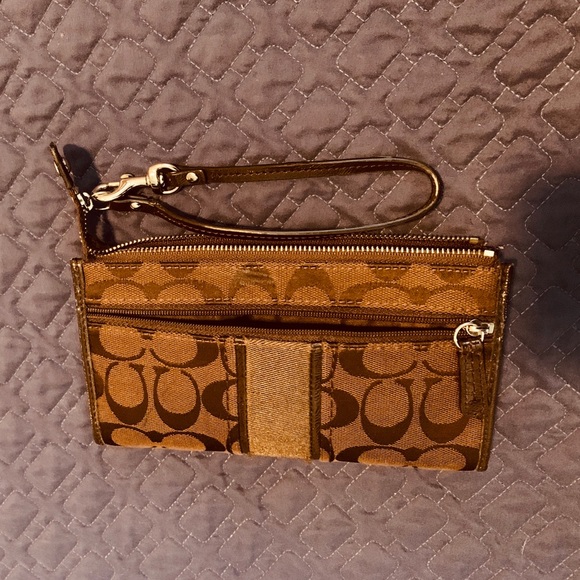 COACH Women's Black Accordion Zip Wallet In Signature Leather.. Have some peeling on the inside.