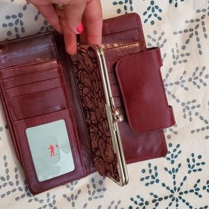 Immaculate wallet or wristlet. Room for phone, red wine color, burgundy.