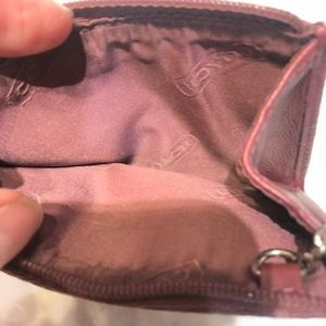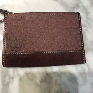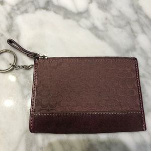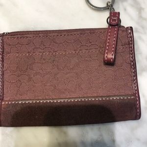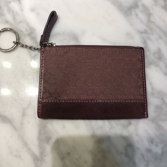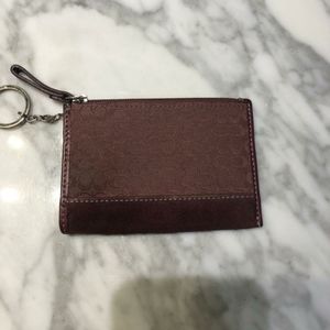 Selling a wine color Coach monogram keychain mini wallet pouch in good condition/ normal wear $15